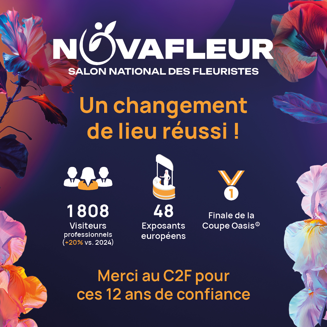Organisé à Tours depuis 2013 conjointement par Tours Événements et le C2F , Novafleur permet aux visiteurs professionnels de découvrir les tendances et innovations de la filière. La Touraine, surnommée « Jardin de la France », est reconnue pour abriter de nombreux Jardins Remarquables comme ceux du Château de Villandry. C’est l’écrin idéal pour rassembler les professionnels de la fleuristerie.